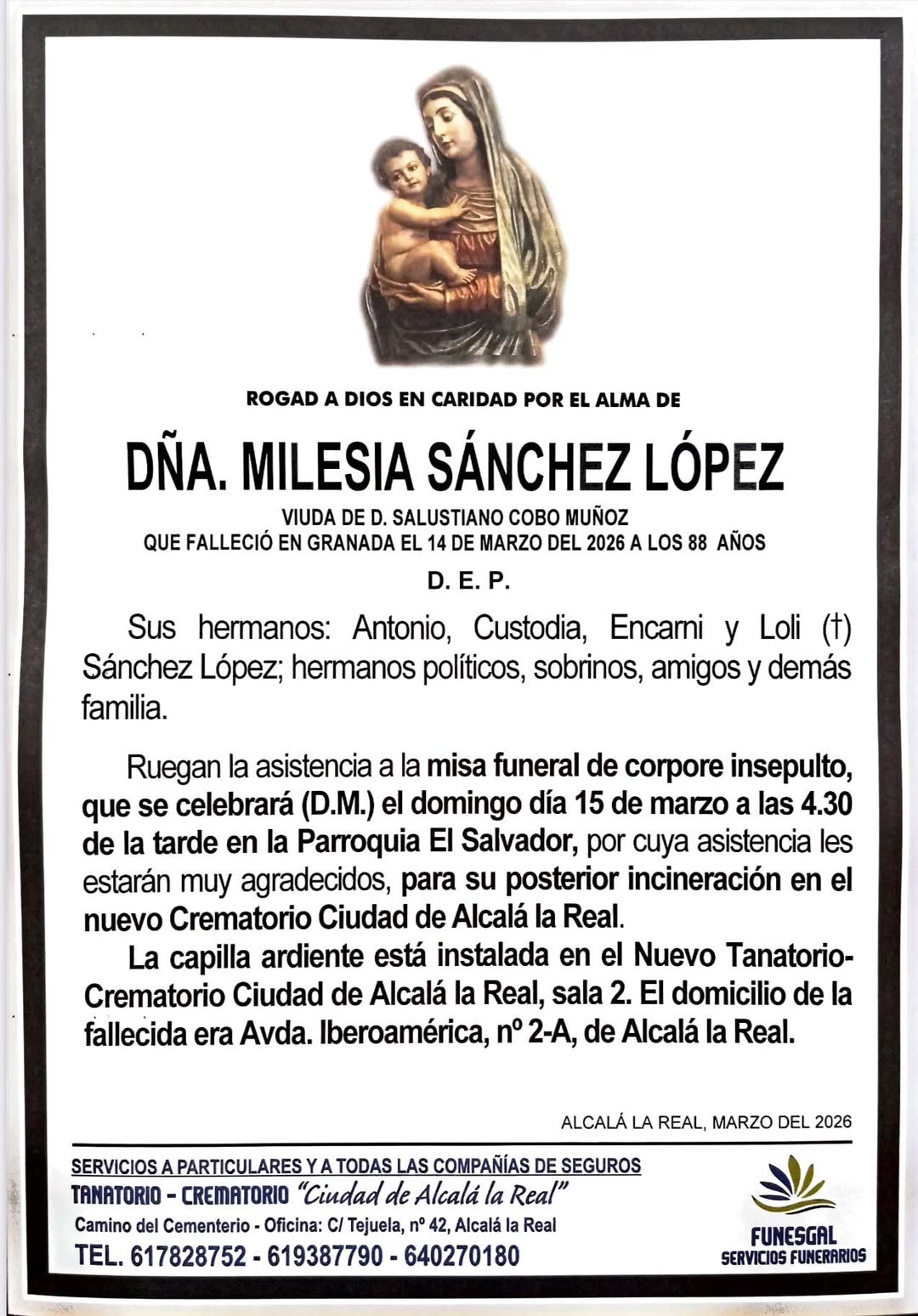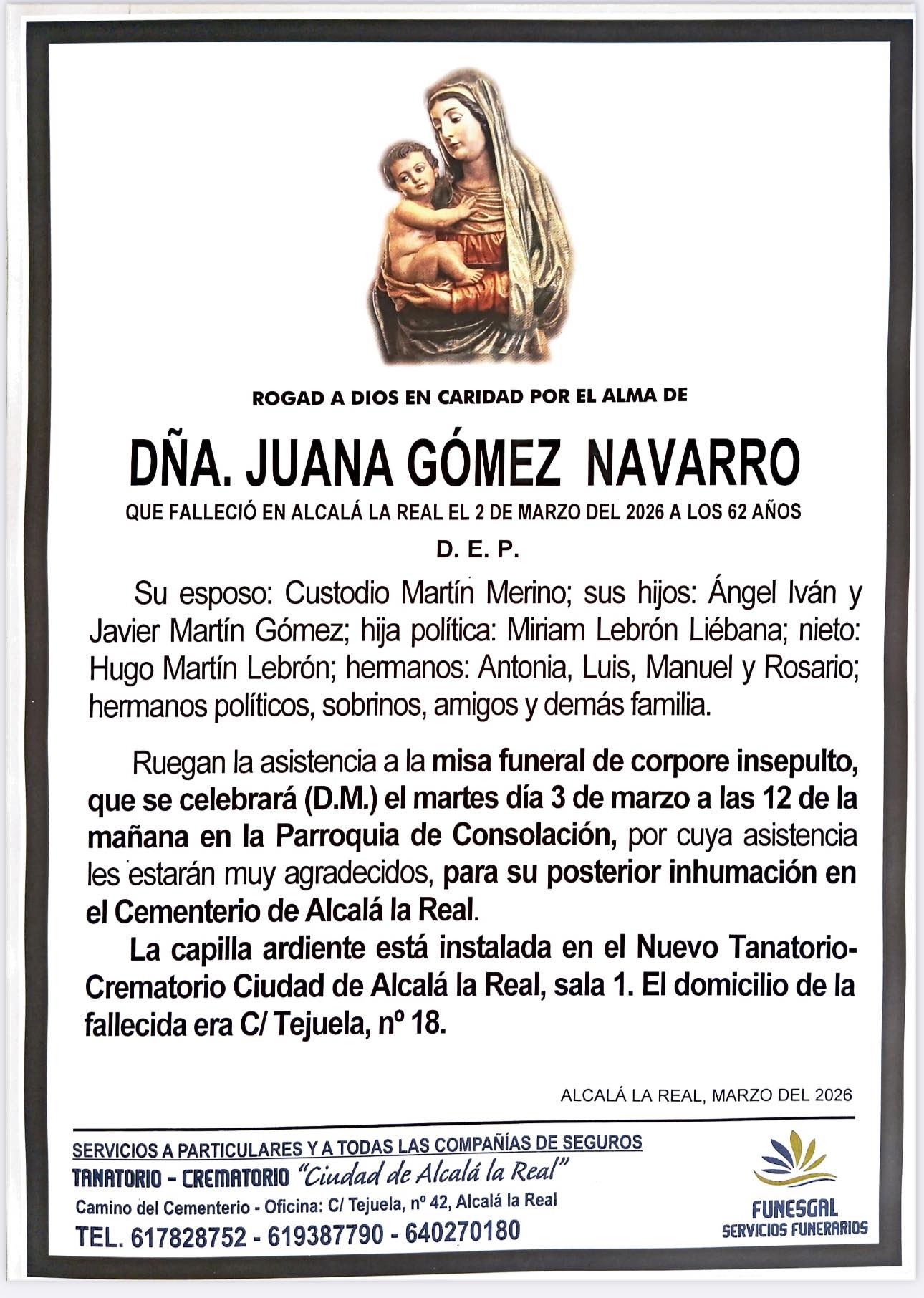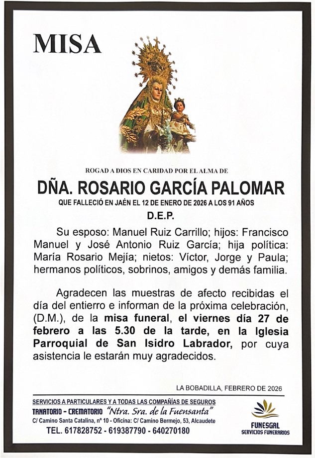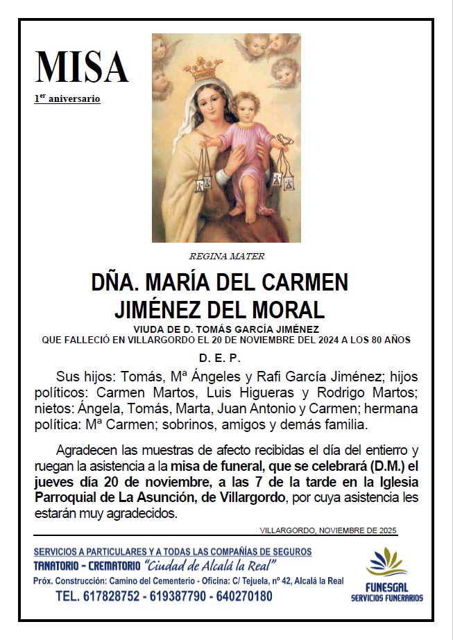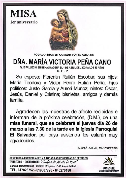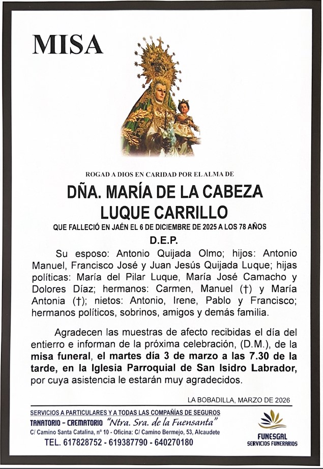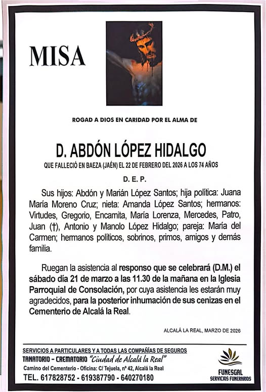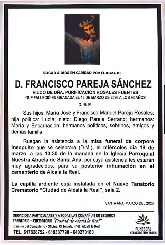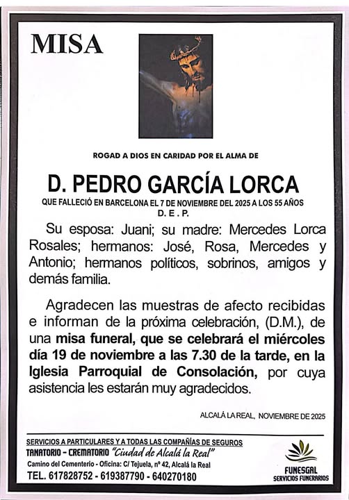 Consulta las esquelas diarias en Funesgal, la funeraria y tanatorio, crematorio de Alcalá la Real y Alcaudete.