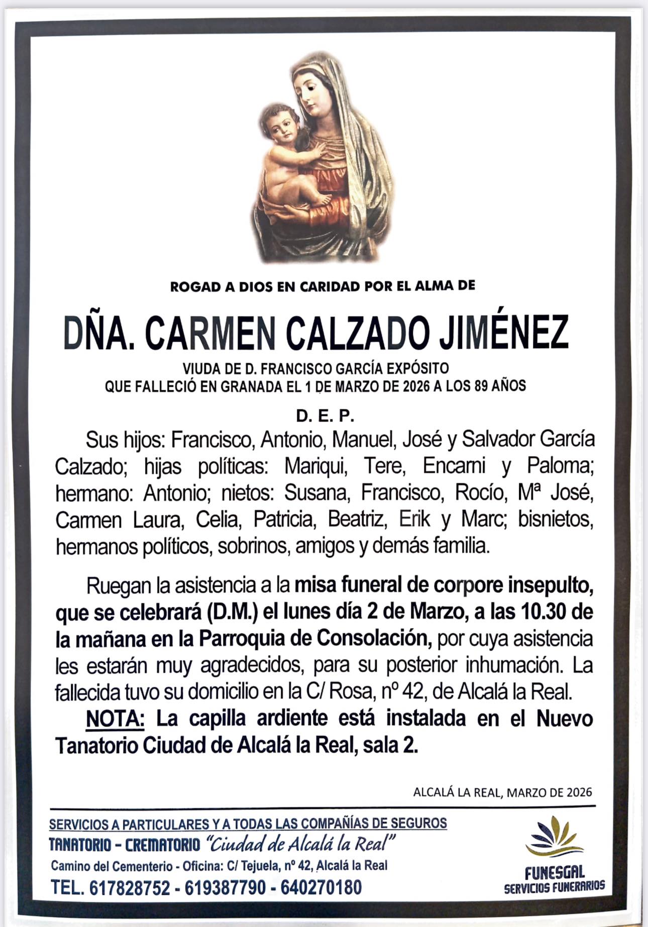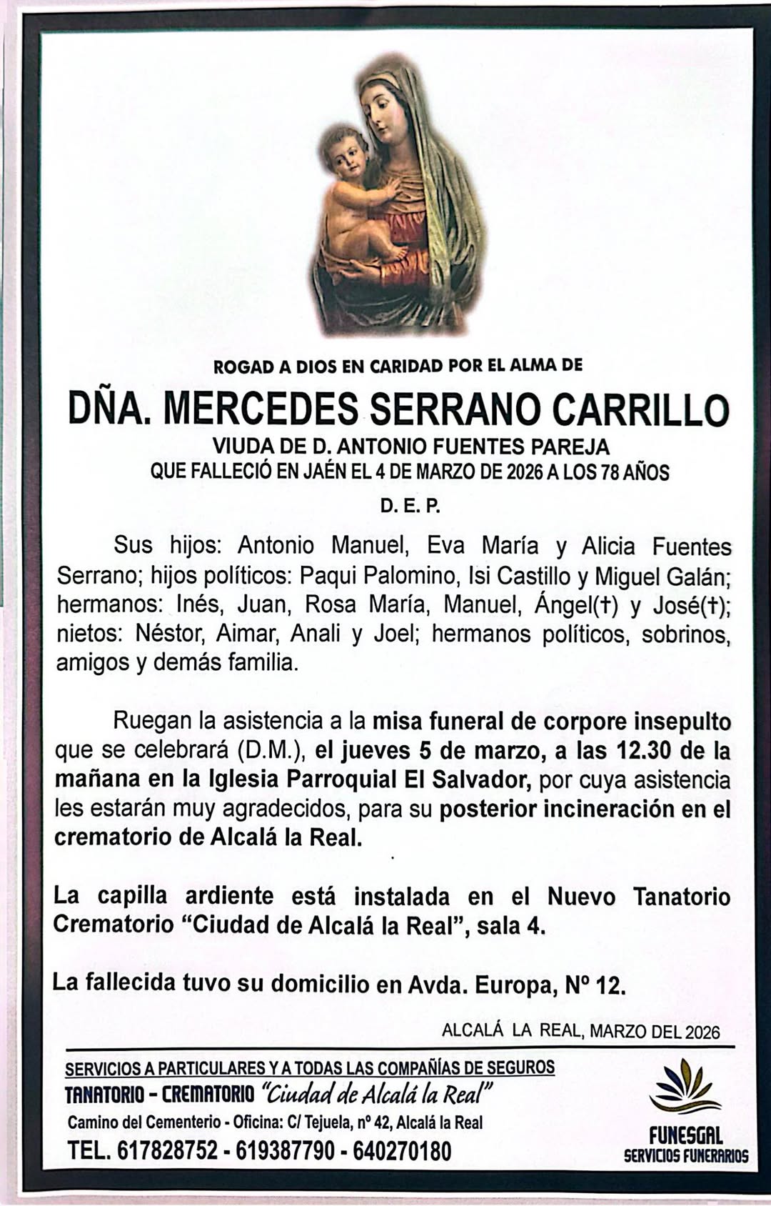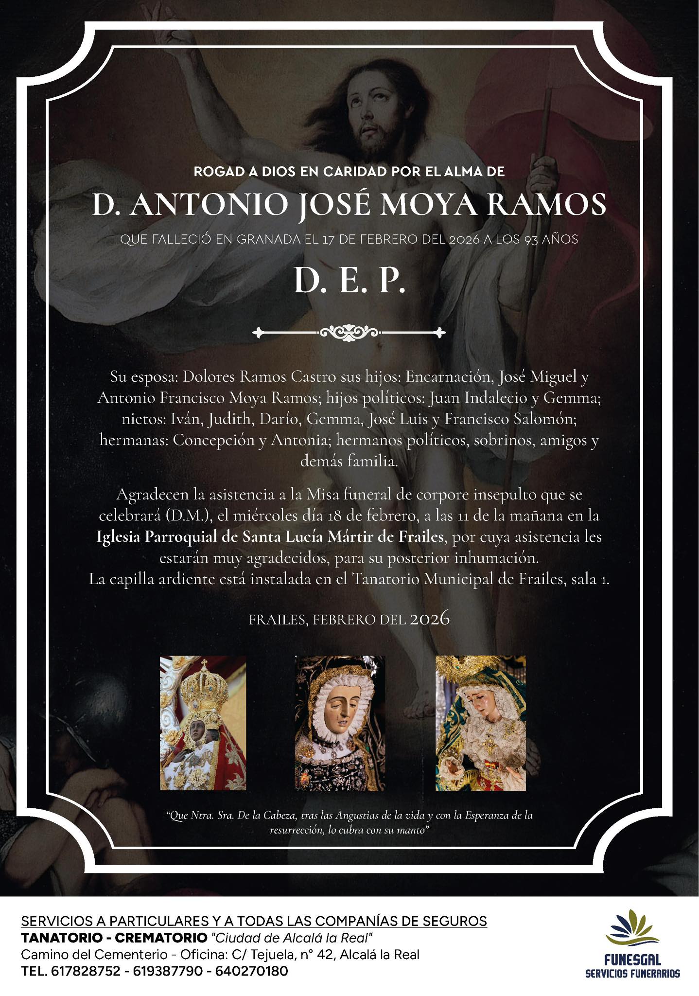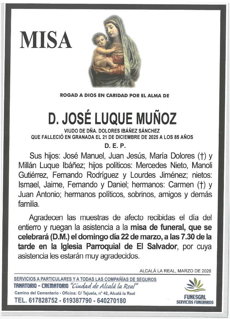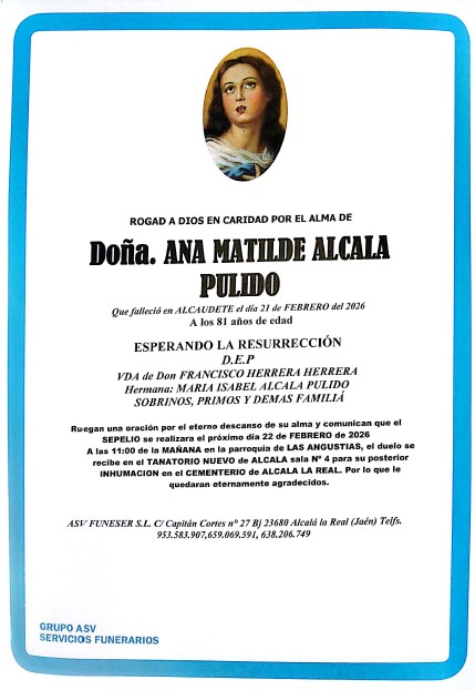 Consulta las esquelas diarias en Funesgal, la funeraria y tanatorio, crematorio de Alcalá la Real y Alcaudete.
