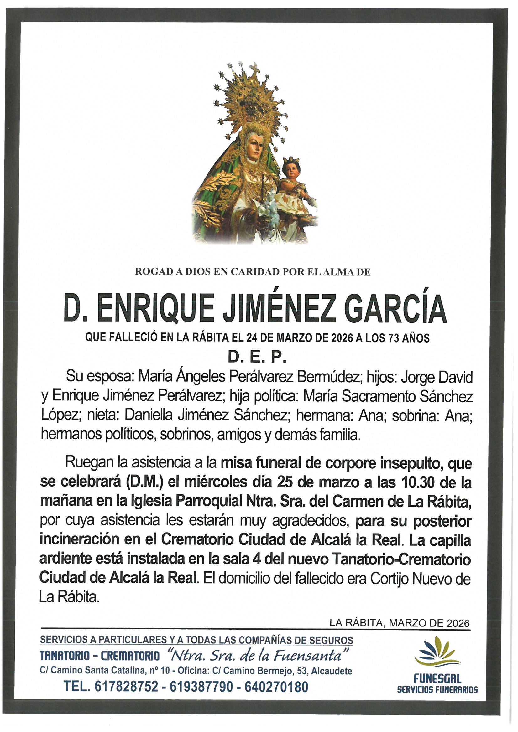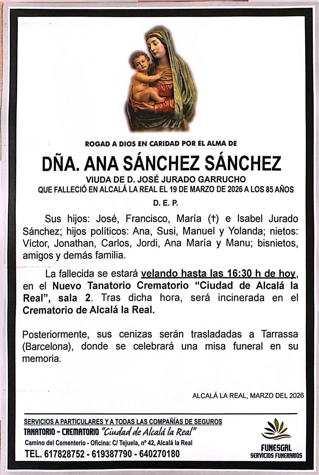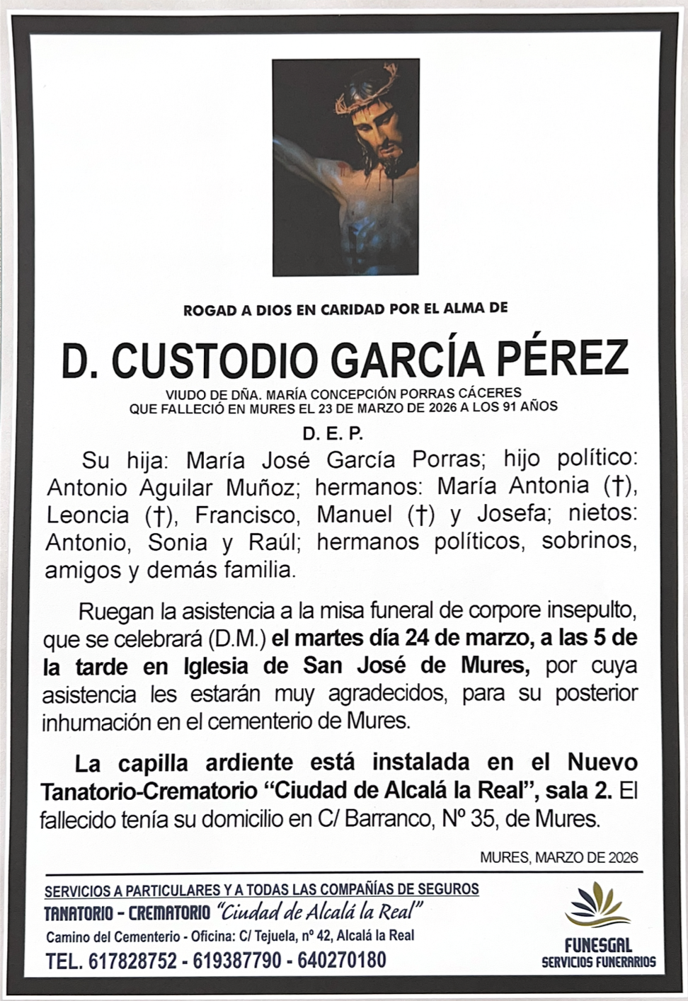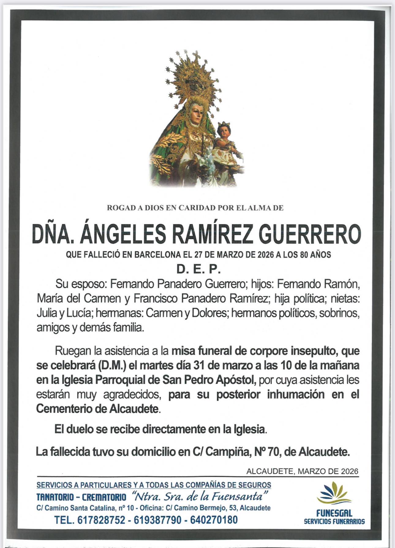 Consulta las esquelas diarias en Funesgal, la funeraria y tanatorio, crematorio de Alcalá la Real y Alcaudete.
