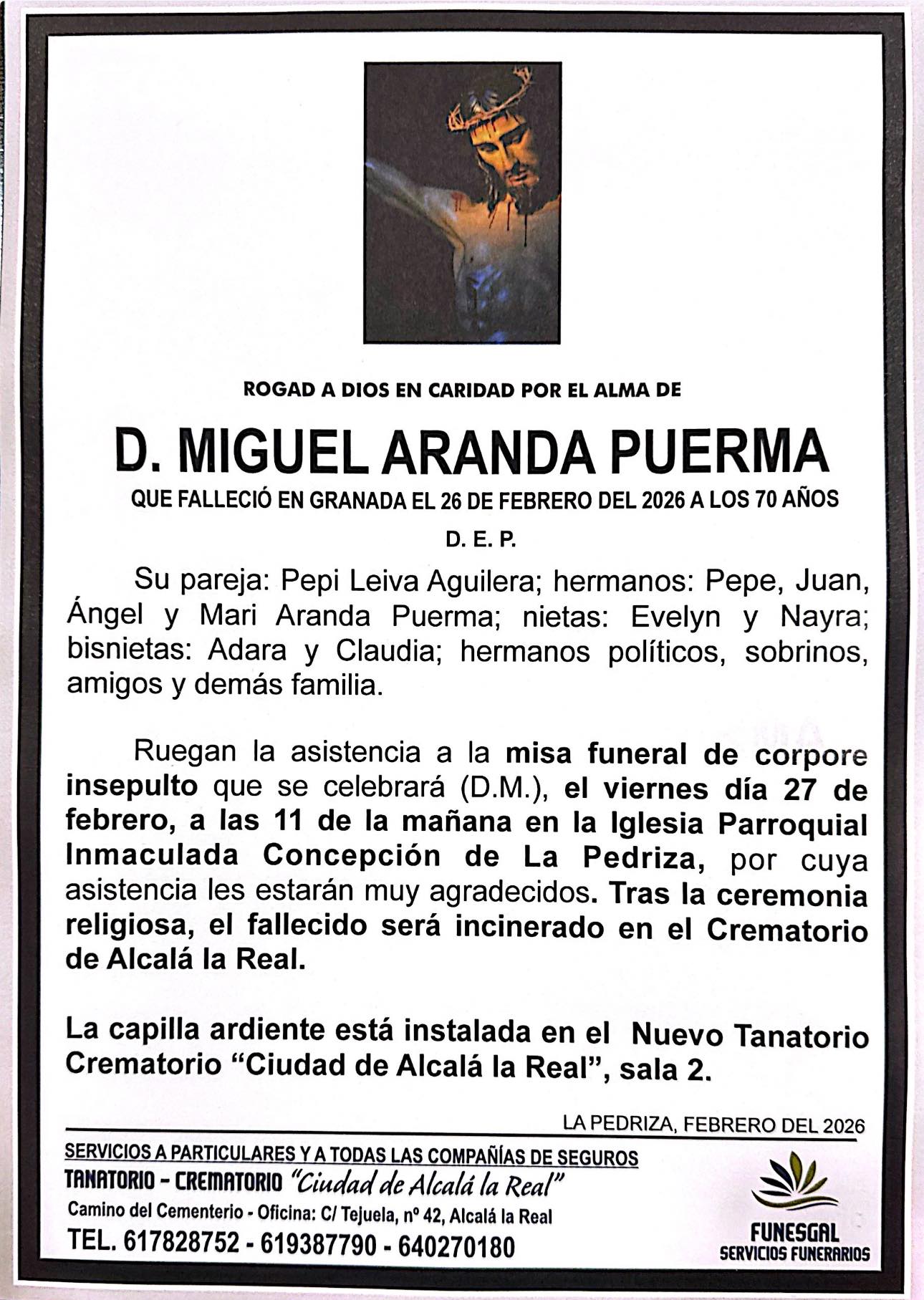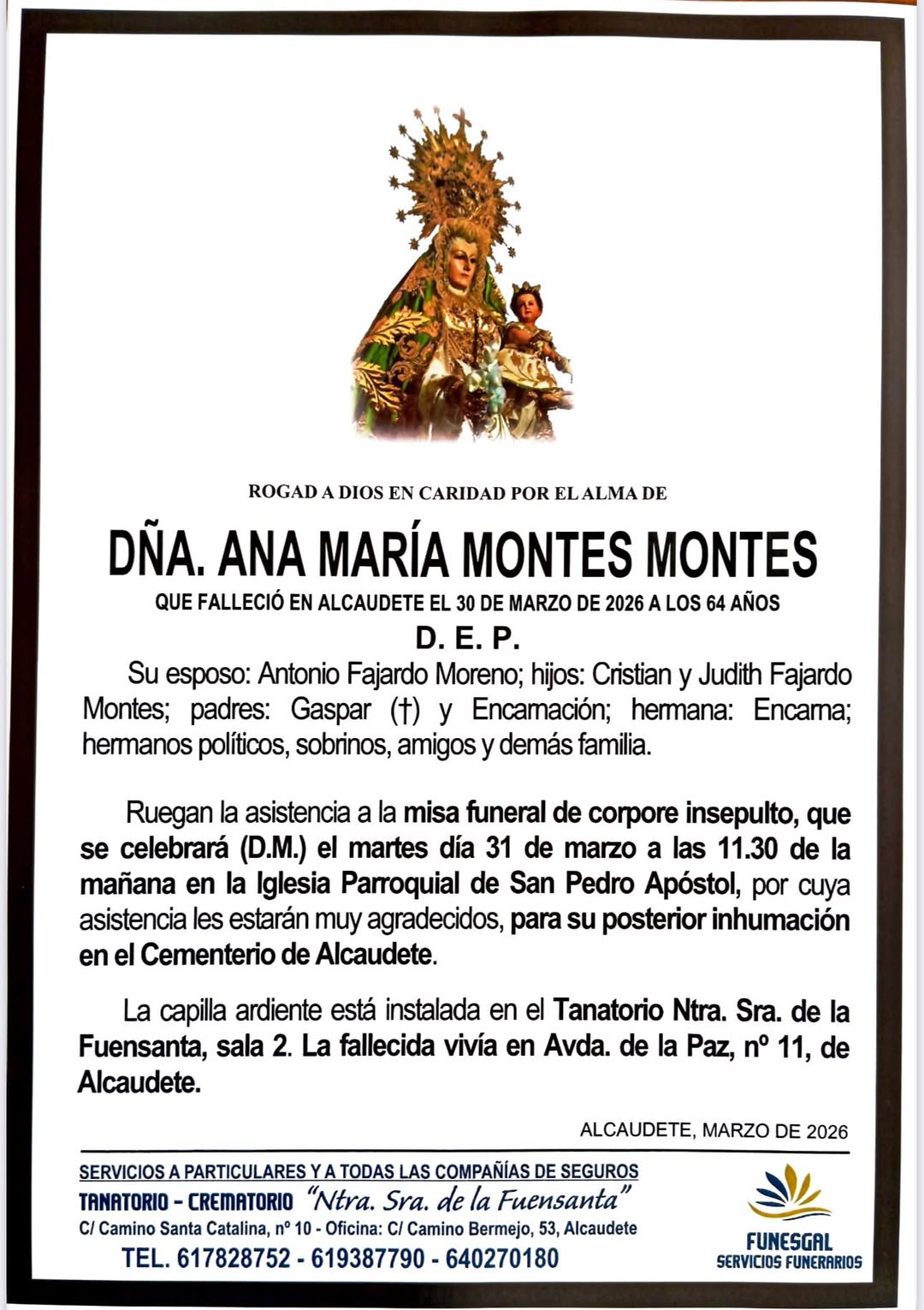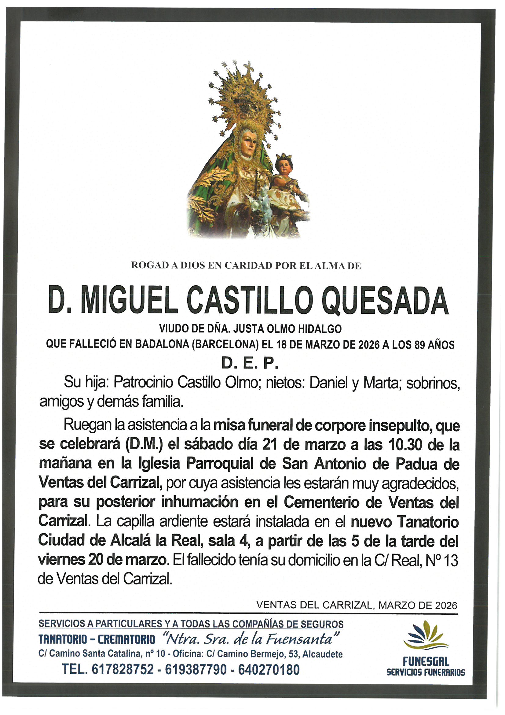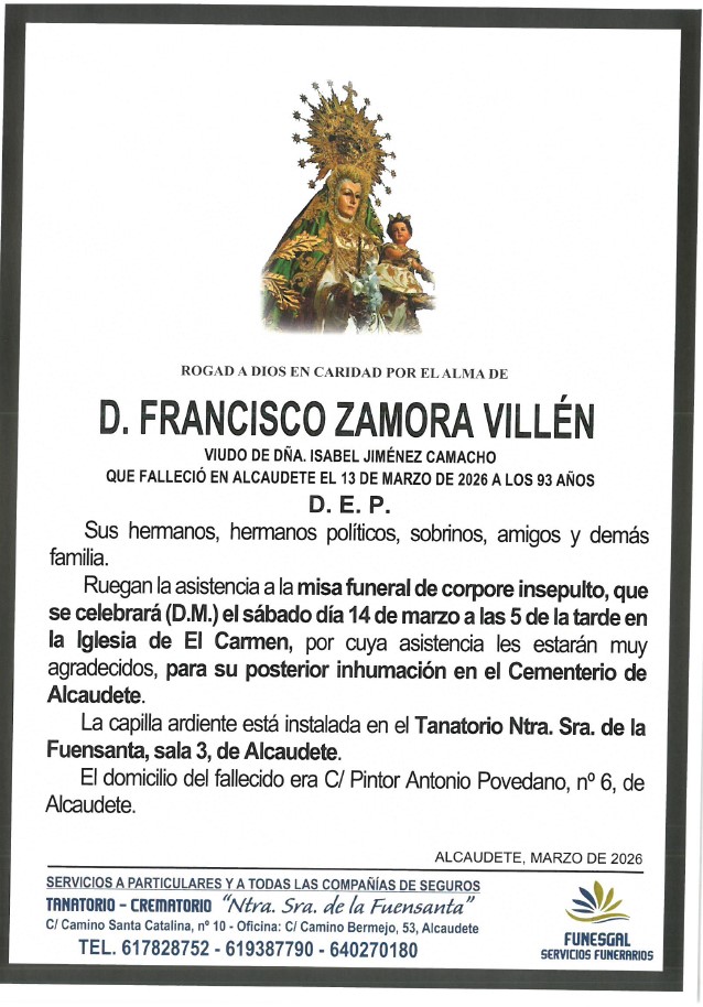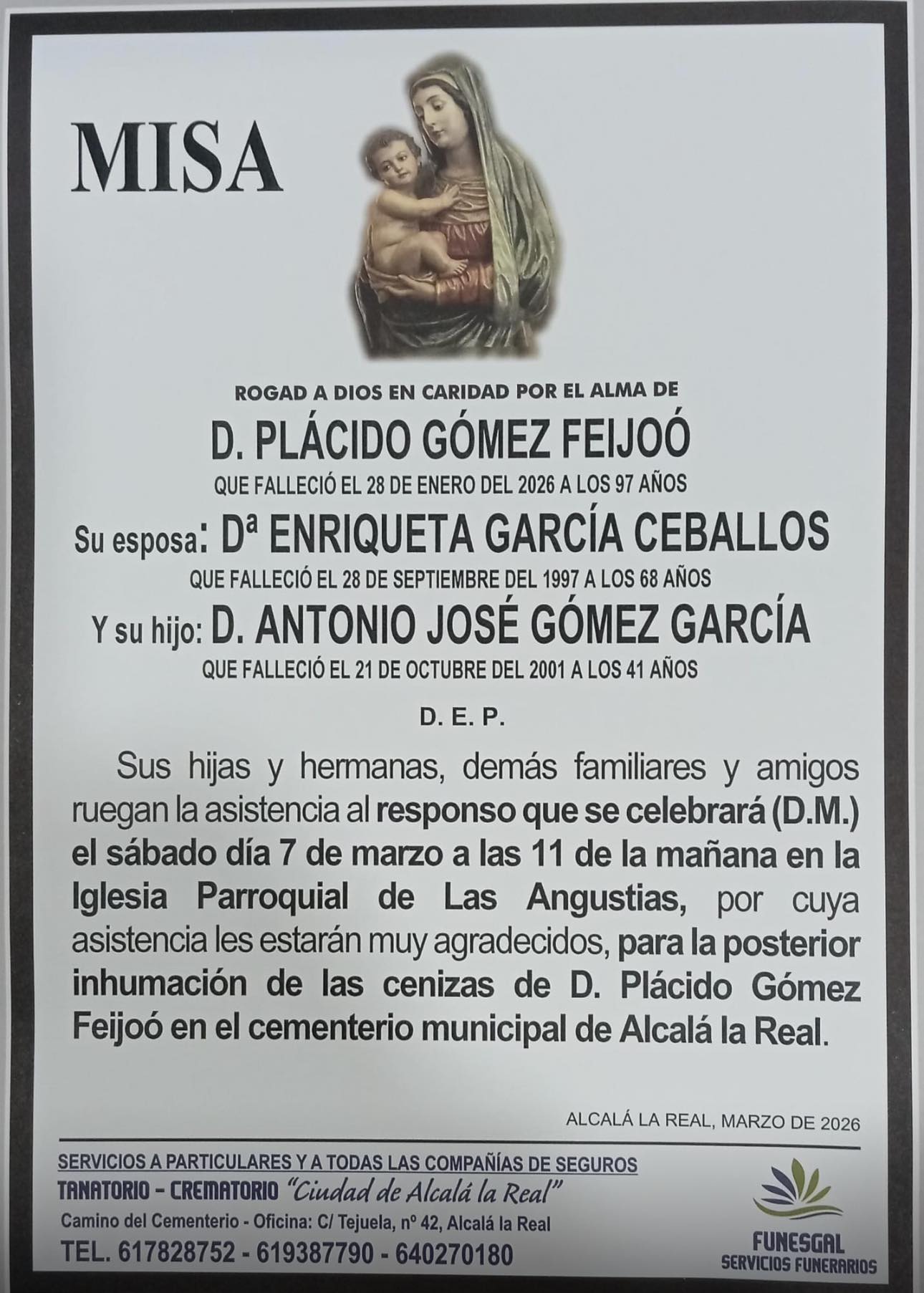 Consulta las esquelas diarias en Funesgal, la funeraria y tanatorio, crematorio de Alcalá la Real y Alcaudete.