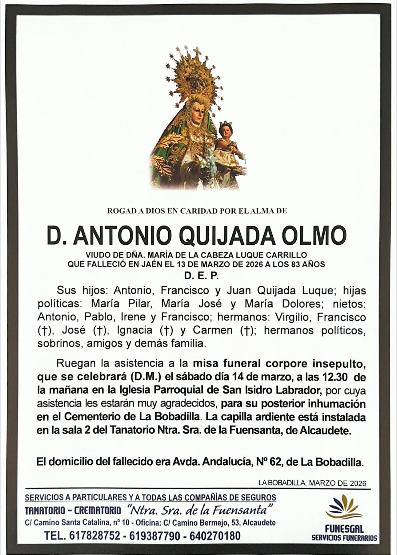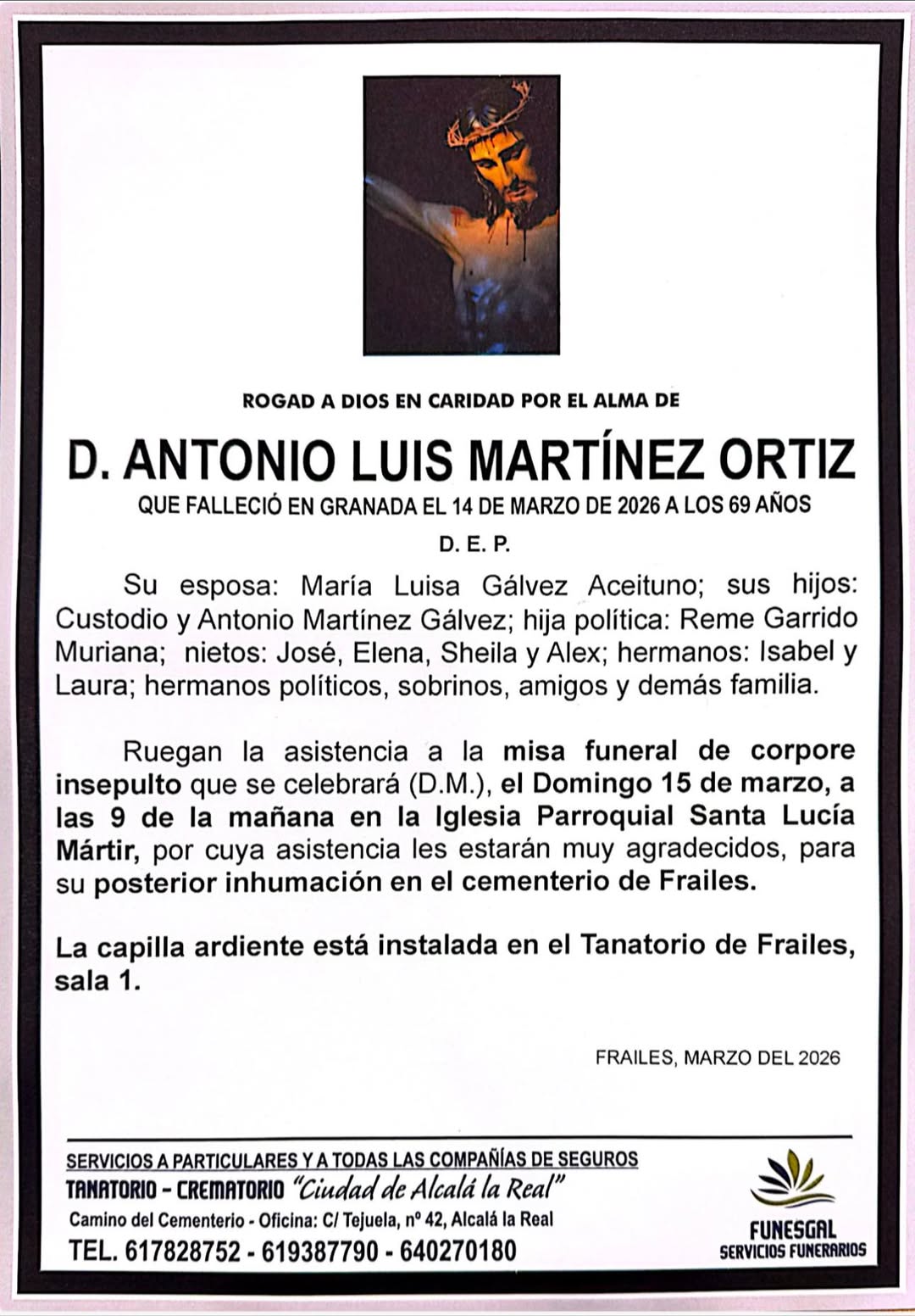 También puedes encontrar la necrológica diaria además de MartosMonte Lope-Álvarez, Villarbajo, Las Casillas de Martos, Fuensanta de Martos, Jamilena, Los Villares, Valdepeñas de Jaén, Alcaudete, La Bobadilla, Los Noguerones, Sabariego, Ventas del Carrizal, Alcalá la RealCastillo Locubín, La Rábita, San José de la Rábita, Santa Ana, Puerto Llano, Ribera Alta, Ribera Baja, Charilla, Ermita Nueva, Mures, La Pedriza, Venta de Agramaderos, Las Caserías de San Isidro y Villalobos.